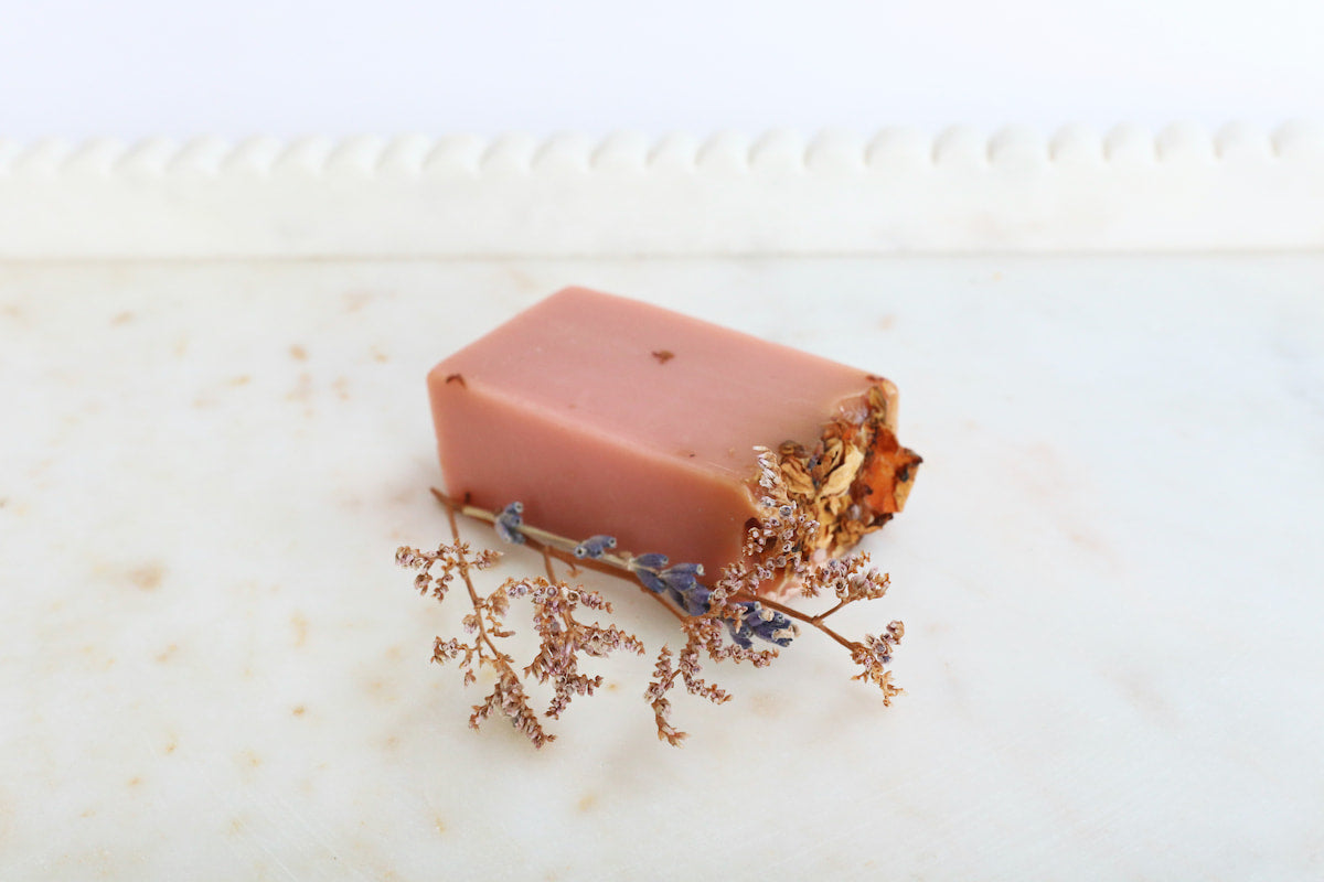 Infused with Rose and Vanilla essential oils and topped with dried rose petals. Creates a rich, creamy lather that gently cleanses while leaving skin soft, smooth, and delicately scented.