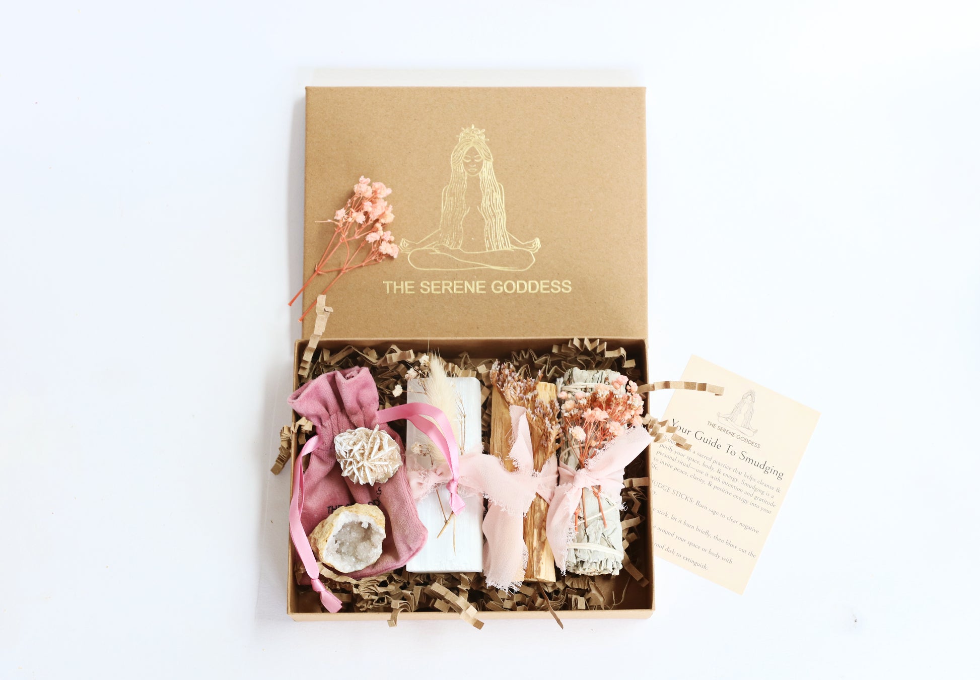 All items are beautifully arranged in a recycled kraft box (18 x 14 x 3.9cm) embossed with the elegant Serene Goddess logo. Accented with soft ribbons and floral touches, this kit makes a meaningful gift or a lovely treat for your own wellness rituals.