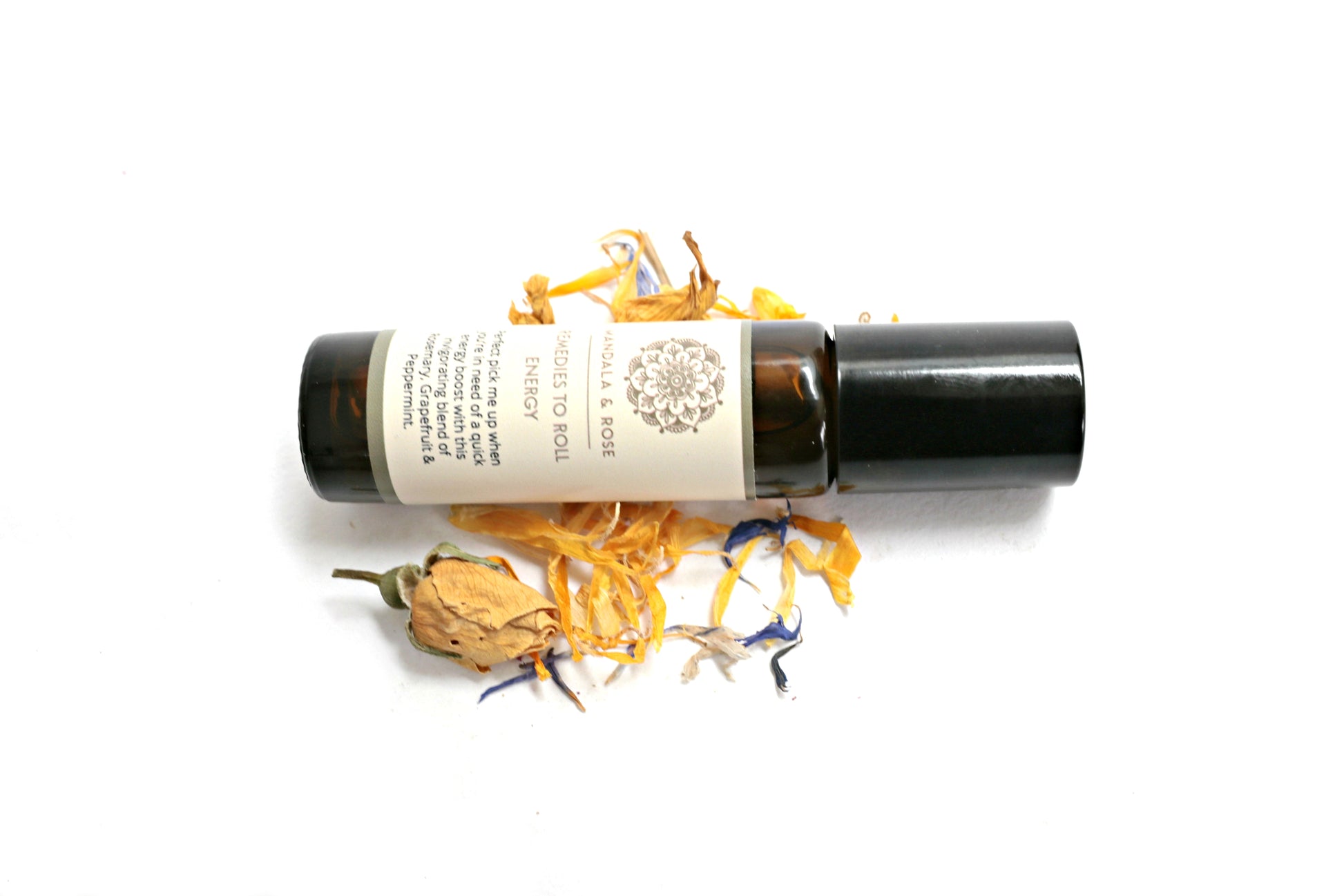 Experience an instant energy boost with the Energy Remedies To Roll, an invigorating aromatherapy blend of Rosemary, Grapefruit, and Peppermint essential oils in a nourishing coconut oil carrier. This energy roller is the perfect companion for self-care on the go, easily fitting in your pocket or handbag.