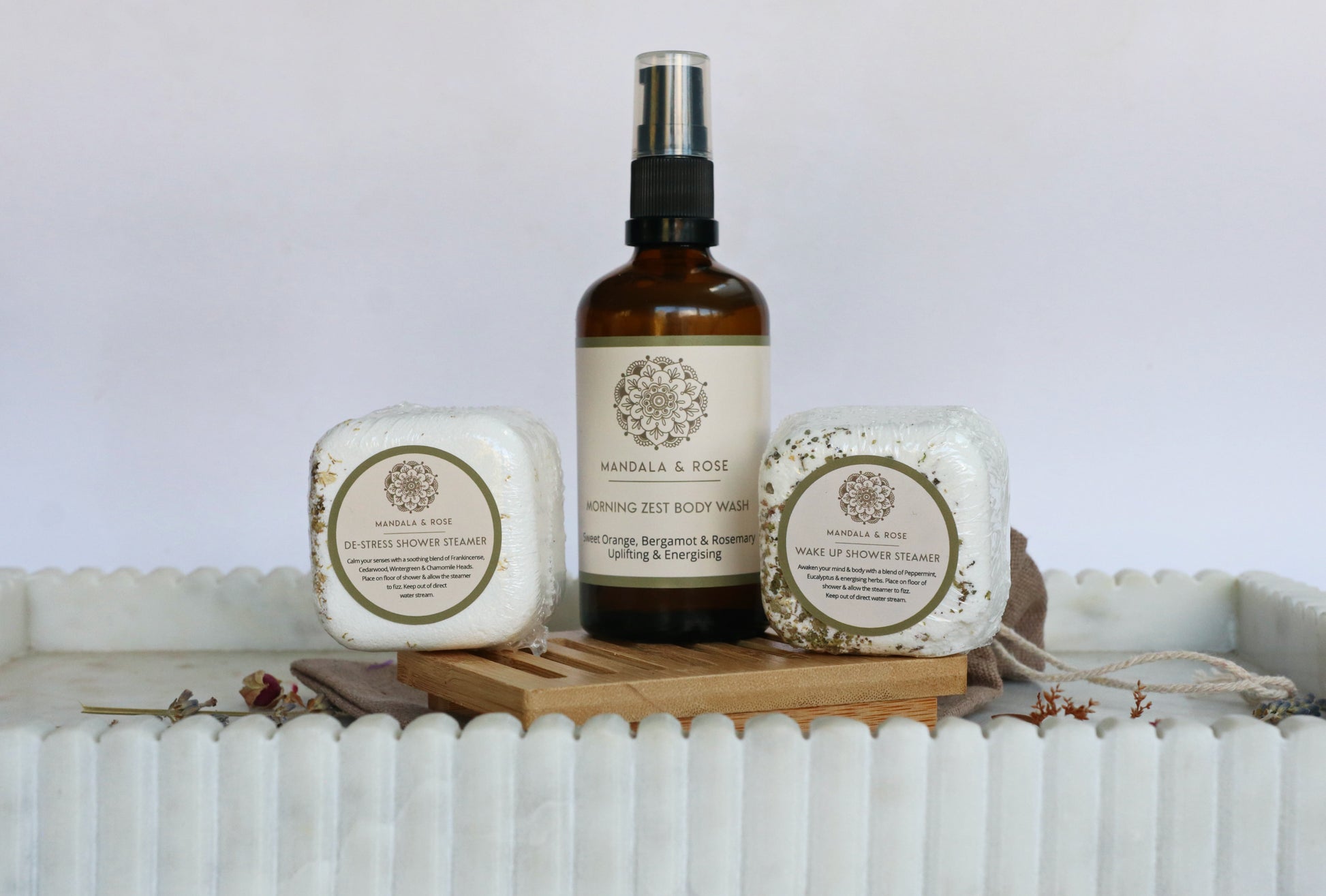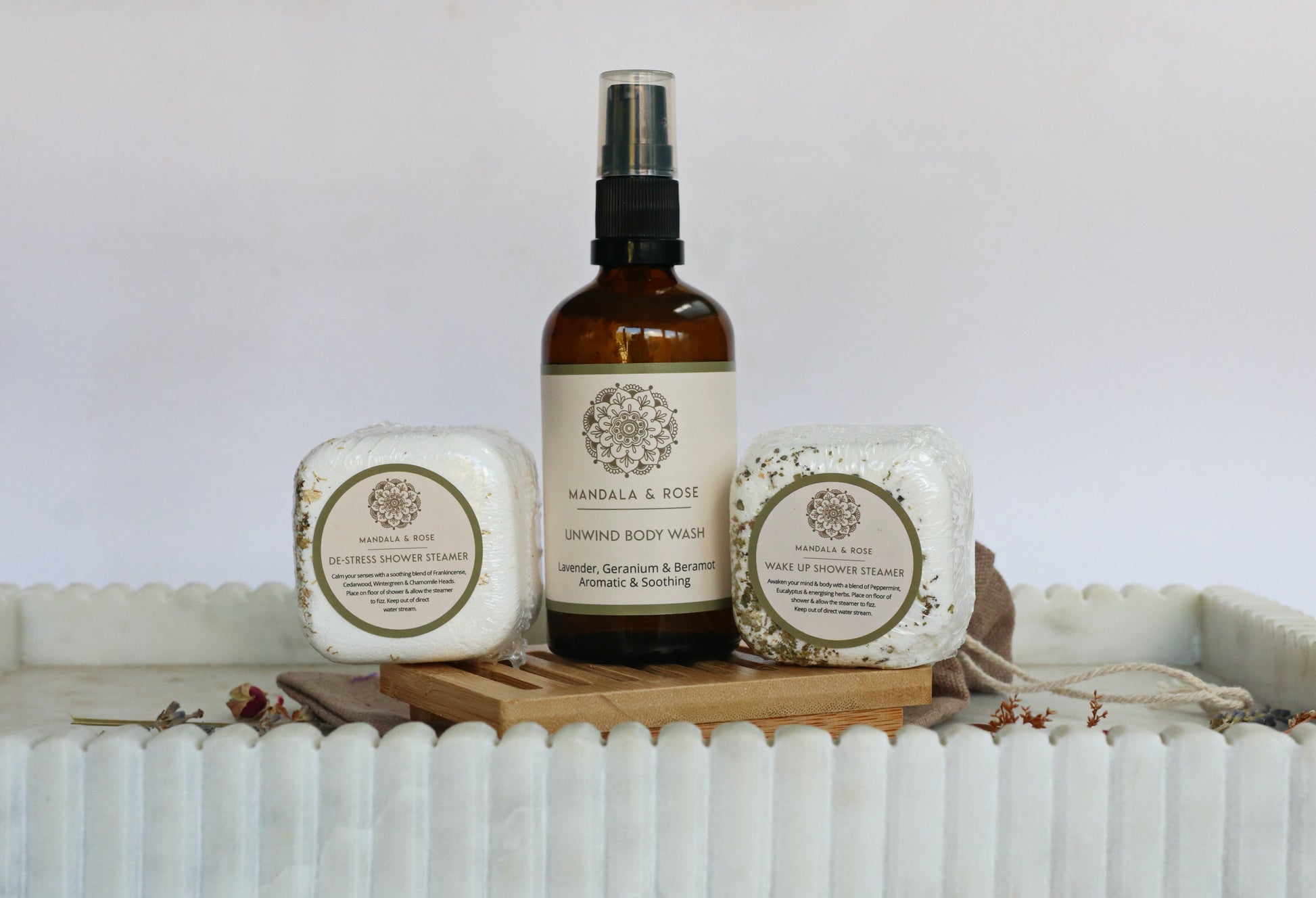 The Shower Escape Bag is a compact, curated experience for anyone who wants to enjoy a luxurious shower at home. With soothing or energising scents, a bamboo tray, and aromatic steamers, it’s perfect as a thoughtful gift or for indulging yourself.
