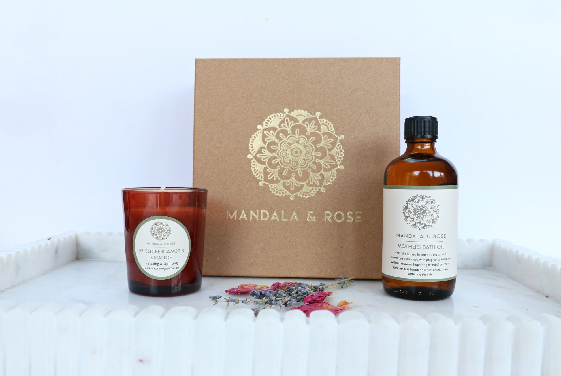 The set comes in a 16cm x 15cm x 5cm kraft gift box, lined with shredded tissue paper and sprinkled with dried flower petals for an elegant touch. Add eco-friendly gift wrap with kraft paper, tape, a branded label, and an organza ribbon to make it even more special.