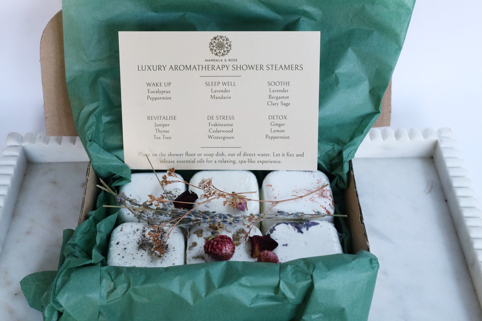 Enjoy our complete range of shower steamers, designed to release uplifting, soothing, and aromatic scents with every shower. Simply place a steamer on the shower floor and let the fragrance envelop you, turning your bathroom into a personal spa.