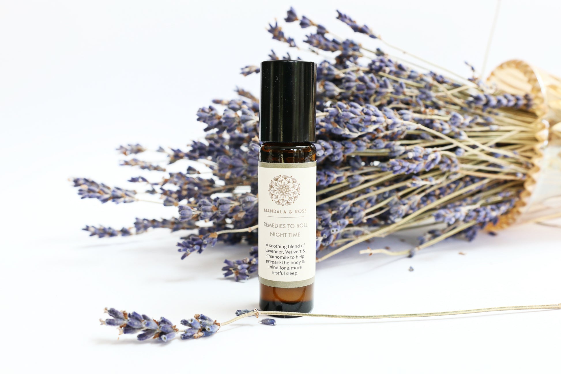 Apply the Nighttime Roll-On to pulse points. Bring your wrist close to your nose, inhale deeply, and exhale with long, steady out-breaths. This mindful ritual encourages the body to release the day.